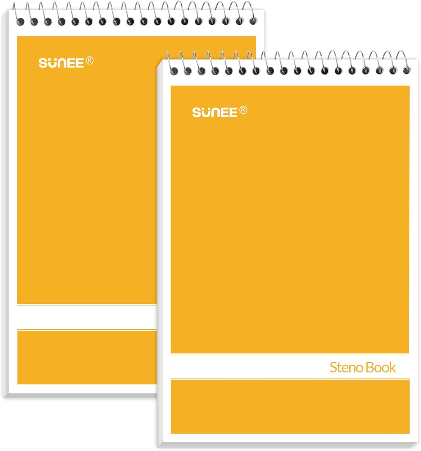 SUNEE 2 Pack Steno Pads 6×9, Gregg Rule, 60 Sheets, Spiral Notebook 6×9, White Paper, Take Notes with Top Spiral Notebook, for School, University, College, Work, Office, Yellow